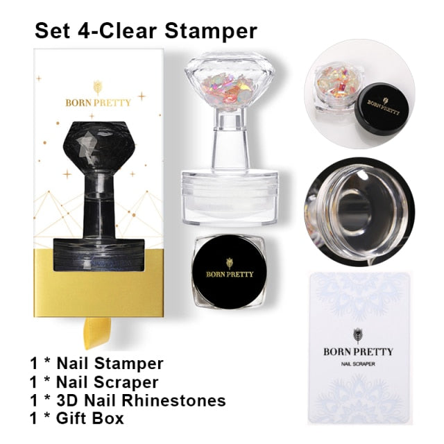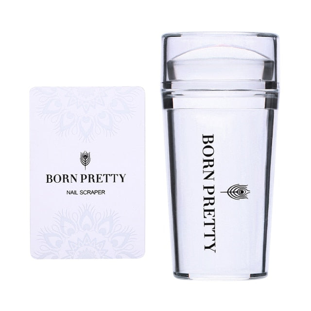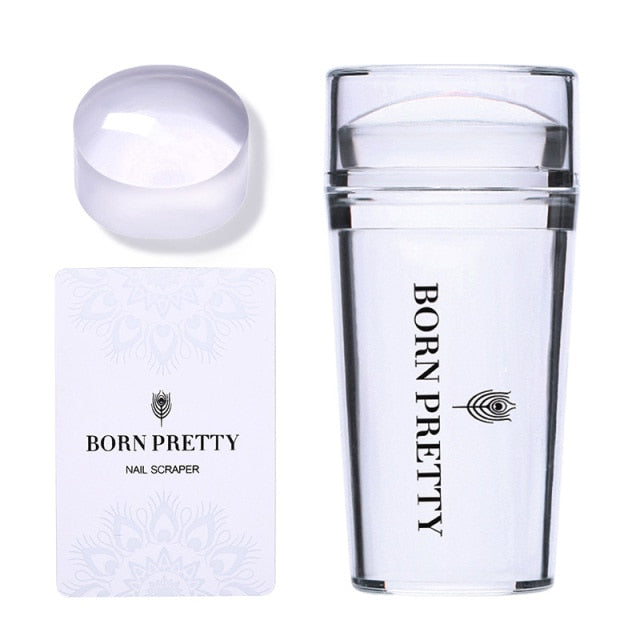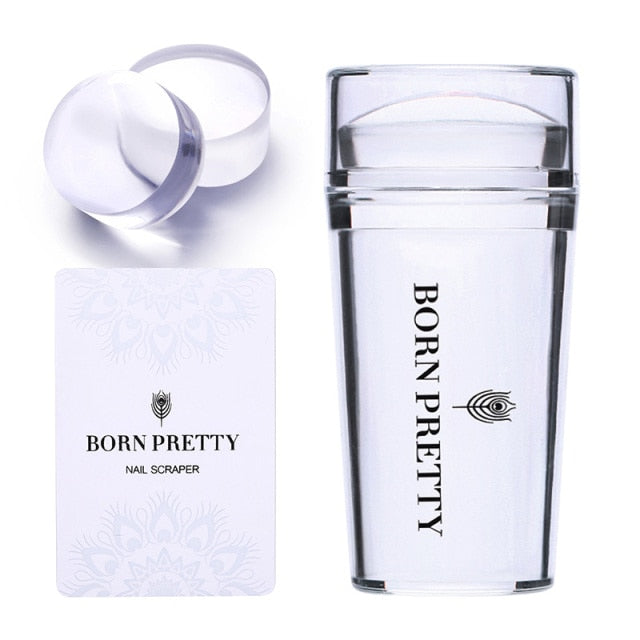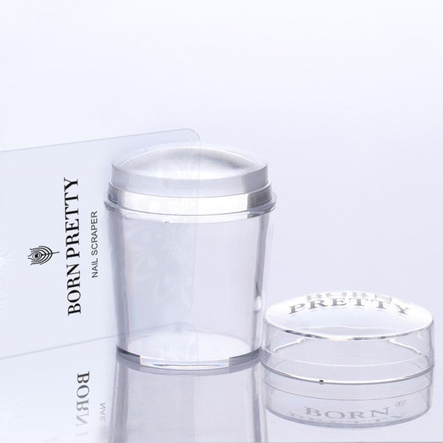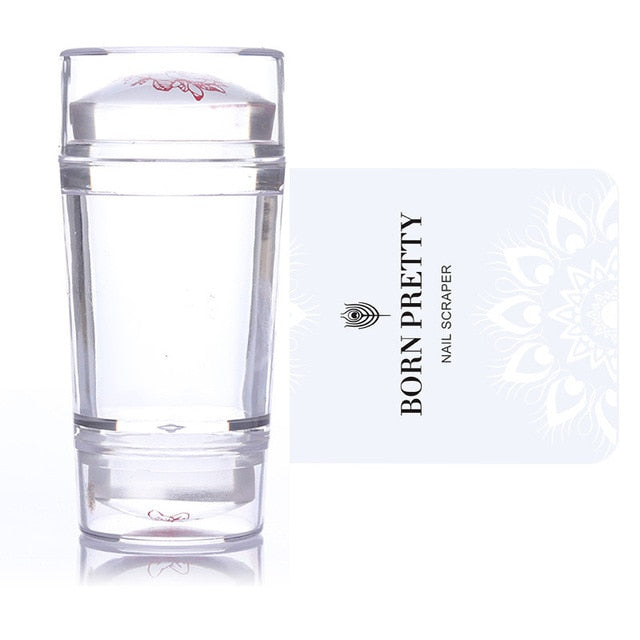 BORN PRETTY Nail Art Templates Clear Jelly Silicone Stamper Enail Stamping Plate Scraper With Cap Transparent Nail Stamper